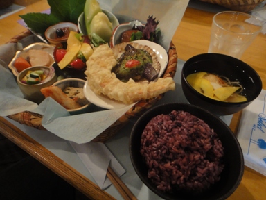 ランチメニューは、花かご遊膳↑(1200円)の一種類だけですが、こだわりの料理&お代わり自由の古代米でした。