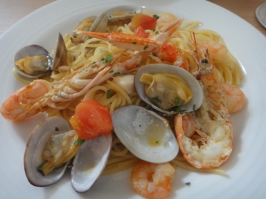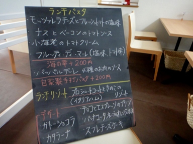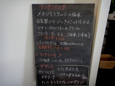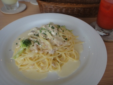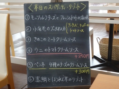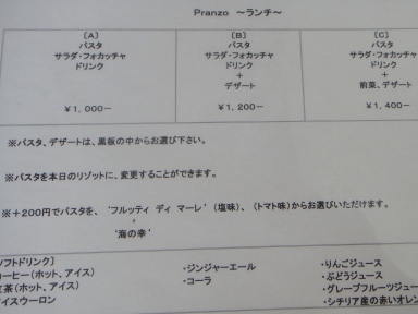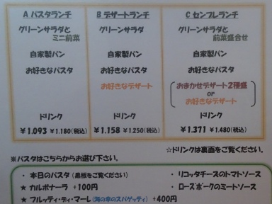 店内は開店と同時に満員になります。ランチは3種類のコースがありパスタは好きな物が選べる。Cランチを選択。