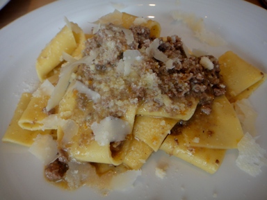 もし初めてこの店に行くならパッパルデッレを食べて欲しい。余談ですが「食いしん坊=パッパーレ」が料理の語源。