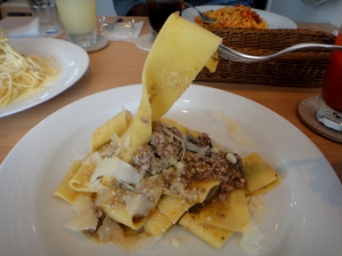 パッパルデッレ↑(200円高い)はトスカーナ地方名物の超太平麺です。これが結城で食べられるとは思わなかった。