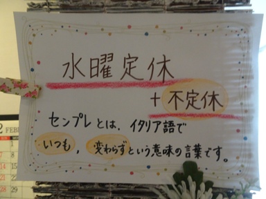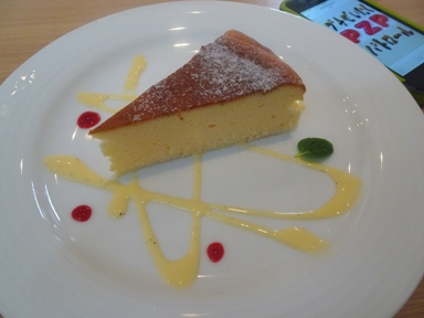 デザートのスフレチーズケーキです。デザートも5種類から選べました。センプレはイタリア語です。知らなかったよ。