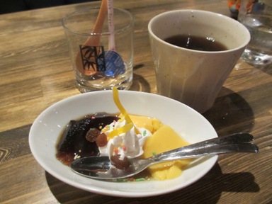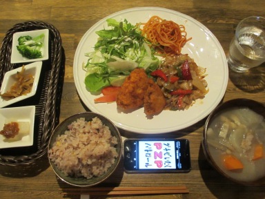 私は、お肉のランチ↑(980円)を食べました。チキンカツ、肉とパプリカ炒め、豚汁、そしてデザートにコーヒー付き。