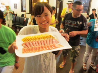 流水ざるラーメン試食。 これ美味しかった。