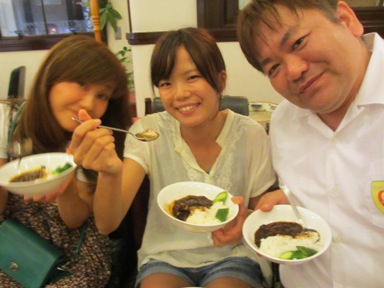 日光天然かき氷↑(500円) なぜか写真を撮ってるベルー人達。