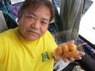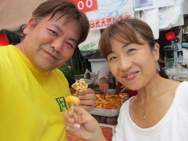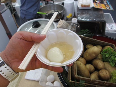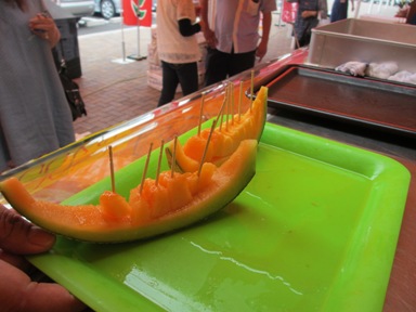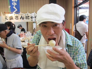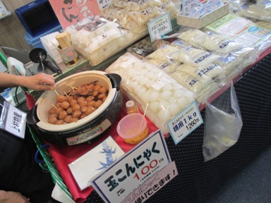 玉こんにゃく試食。 メロン試食。