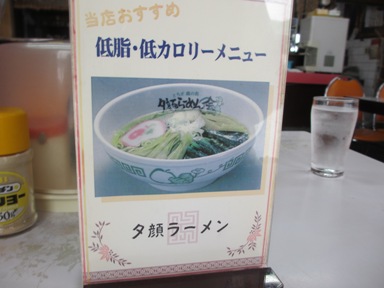 店主におすすめを聞いたら、夕顔ラーメン(500円)をすすめられました。おいおい写真と現物が違い過ぎるぜ!