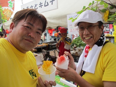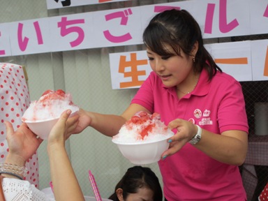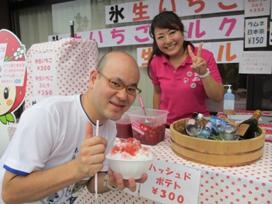 この店の氷イチゴ(300円)は量も多いしイチゴも本物です。値段の安さと店員さんの笑顔にはぎーさんも大満足。