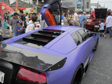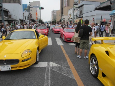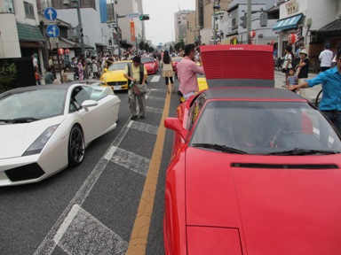 これだけスーパーカーが並ぶと見とれてしまう。 写真は自由でも触ってはいけないそうです。