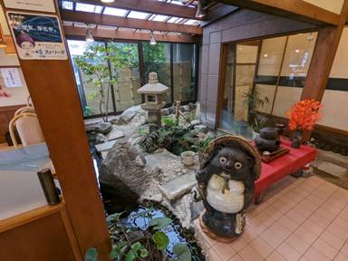 まさかの12年ぶりの訪問です。店内を流れる井戸水の川は健在でした。狸も12年前と変わりません。継続は力。