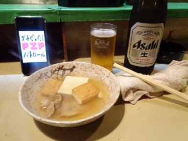 おでんみたいな、お通し↑(200円)とビール中瓶↑(500円)を頂いてから、焼鳥↑(各種100円)を6本食べました。