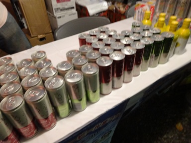 缶入りワインを氷で冷やして売っていました。 スパークリングワインの缶もありました。