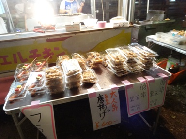 焼き鳥も1本120円と低価格でしたが、モモ肉しか無いのは寂しい。数種類用意してくれれば良かったのにね。残念。