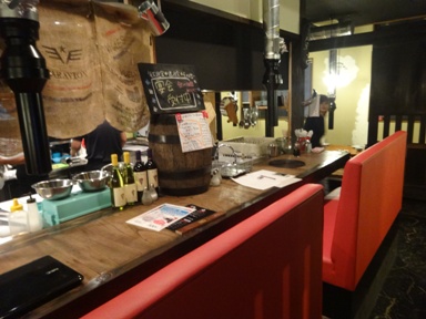 店内は御覧の通りお洒落。板に墨汁を塗って黒くしている店主自作のパーツもあります。これは、すぐ解りますよ(笑)