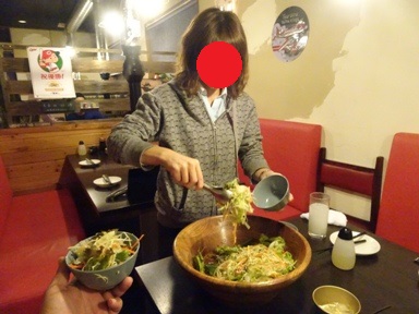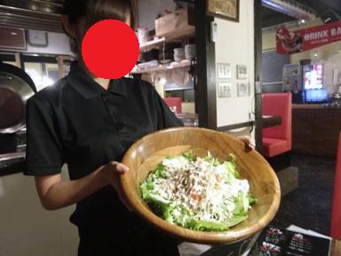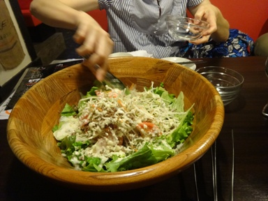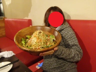 アミちゃんが持ってる、サラダ大↑(830円)は本当に大きくて盛り上がった。6人で分けても十分なボリュームです。
