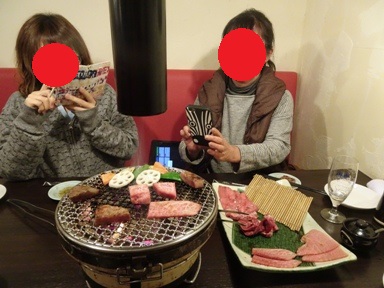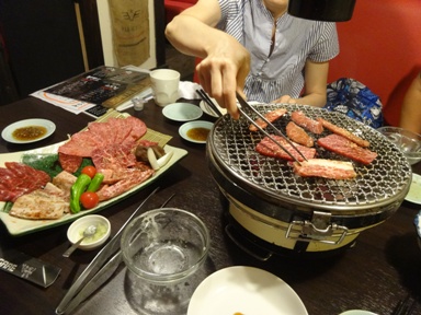 最初に注文したサラダ大↑(780円)は本当に大きかった。3人で食べて野菜の補給は終了。では肉に行きますよ。