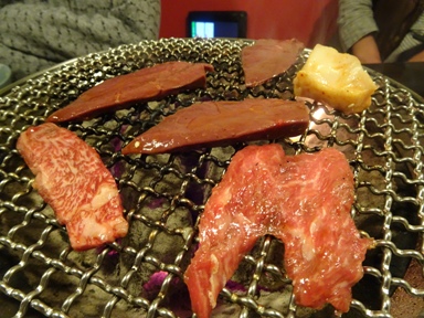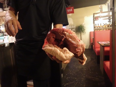 店主が切りたての牛の心臓を見せてくれました。初めて見た。そんな訳でハツ↑(500円)を注文。食感が良かった。
