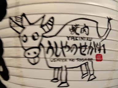 個人的に店頭にある提灯の牛の絵が気に入った。適当に書いているように見えるけど何となく愛着を感じる牛です。