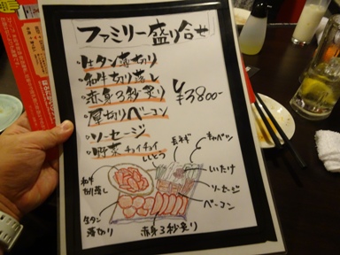 すでに大満足なのですが、マイちゃんが更にお得な新メニューのファミリー盛り合わせ(3800円)を見つけました。