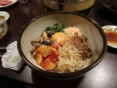 山形牛ユッケ↑(1200円)は食品衛生上の処置済みだった。石焼きビビンバ↑(750円)でシメました。ご馳走様。