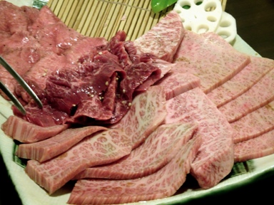 とちぎ和牛盛り合わせ↑(5000円)を注文。切り落とし、上カルビ、特選カルビ、中落ちカルビ、赤身炙り、のセット。