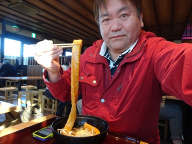 じつは「鬼平犯科帳」を良く知らないんです。長さ約50センチ、幅約2.5センチのうどんはもっちりして食べて楽しい。