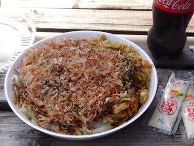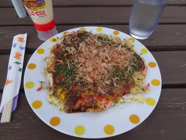 相棒(犬)が「腹が減った」と訴えるで食事に来ました。初めての店なので、お好み焼きミックス(350円)を注文した。