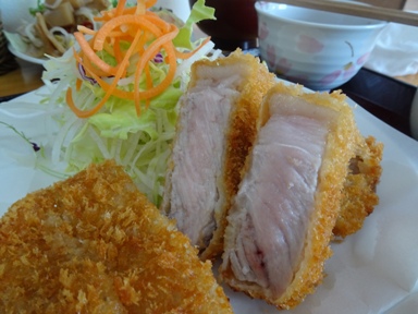 注文はトンカツ定食↑(980円税別)です。分厚い肉は小山市のブランド豚「おとん」を使用。これは飯がすすむね。