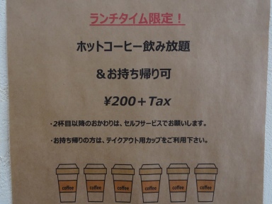 最後にお代わり自由のホットコーヒー↑(200円税別)、かぽちゃプリン↑(250円)も食べて大満足のランチでした。