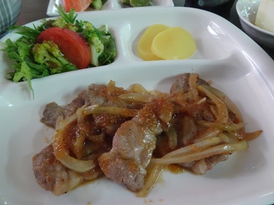 日替わりランチ↑(500円)は焼肉でした。ワンコインでこのボリュームなら文句無し。他にも多数メニューあります。