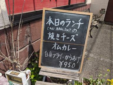 お、いつの間にかノボリまで作ってた。経営状態余裕ありです。カレー↑(450円)は特に安くてボリューム満点です。