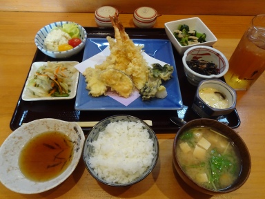 てんぷら定食(800円)を注文。揚げている時の匂いだけで美味しいと解ったが、実際に出てくると価格以上に豪華。