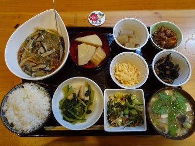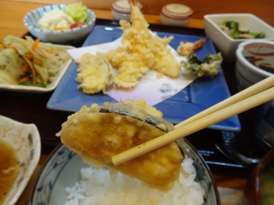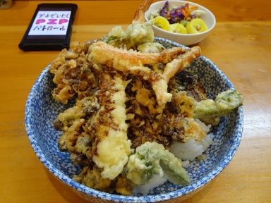 天丼が凄い。ヌカゴと言う大和芋の子供、コゴミと言うワラビやゼンマイのようなシダ植物、など私の知らない世界だ。