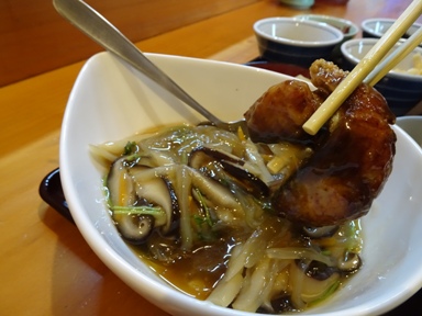 鯖唐揚げ五目あん掛定食↑(800円)を注文。手作りの小鉢は全て高水準の出来。メインの鯖も素晴らしかった。