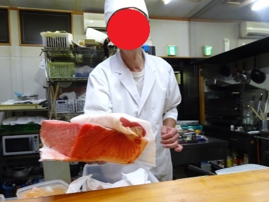 こはだフライを食べながら話を弾ませていると、目の前にマグロ塊が出現。これ見ちゃったら握ってもらうしかない。
