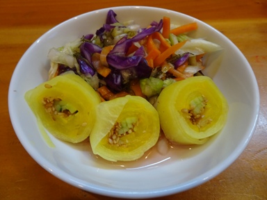 ランチはサワラ焼き定食(800円)を注文。相変わらず前菜が多くて嬉しい。クワイ(慈姑)なんて久しぶりに食べた。