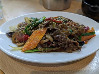 プルコギ定食↑(950円税別)も他の店と味が違う。プルコギと春雨のハーモニーがたまらない。ご飯お代わり自由。