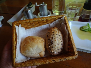 最初にサラダが来ました。量が多い!これ普通に3人分はある。次にパンが2個来ました。これは普通サイズです。