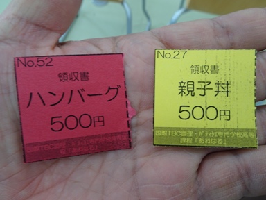 親子丼↑(500円)は高校生の作品とは思えないレベルの親子丼だった。付け合わせもOK。特にお吸い物が良い。