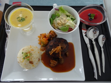 ハンバーグ↑(500円)も基本に忠実な味付けとなってた。デザート類もパティシエ専門学校の底力が垣間見えた。