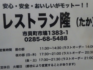 栃木県市貝町市市塙1383−1。営業時間はAM11:30〜PM2:30。PM5:30〜PM8:30。火曜日定休日。