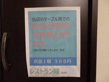 なんと店内でタバコを吸う方は灰皿代(300円)が必要になります。このシステムは素晴らしい。普及させたいですね。