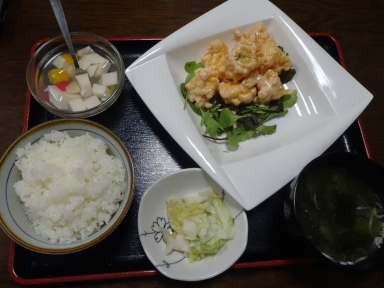 エビマヨ定食↑(1000円)も注文。プリプリの海老が食欲を誘います。他にも気になる定食がいっぱいありました。