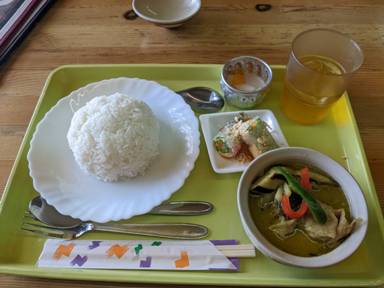 グリーンカレー↑(850円)を注文。ココナッツミルクの香が食欲をそそる。味は辛さ少なめで私には物足りない。