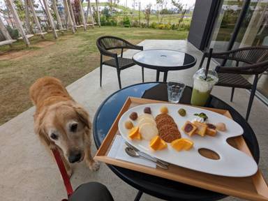 前回の訪問時に「テラス席でペットと寛げますよ」と言われたので実証してみた。日陰も多く確かに寛げました。