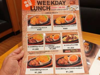 なんと物価高に逆行して、チキングリル&牛メンチ↑(980円)が新発売です。ライスバー&スープバー付きです。