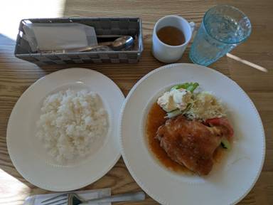 朝、牛丼をたべてからランチを食べに来たら今日のランチは牛丼だったので、チキンジンジャー(1000円)を注文。