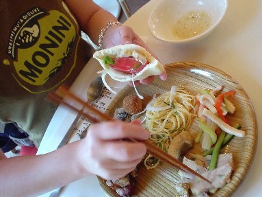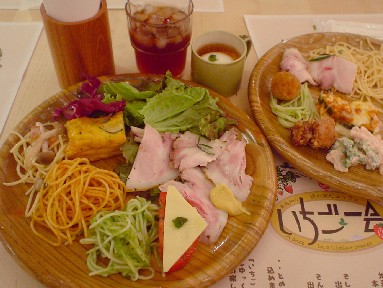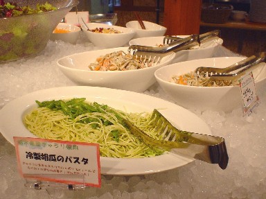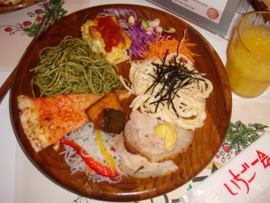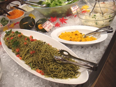 何にも気にせず行ったら、ハロウイン・メニューになってました。紫蘇っぽい味のジェノバ風パスタ↑とかありました。