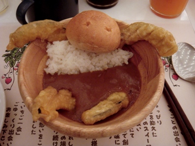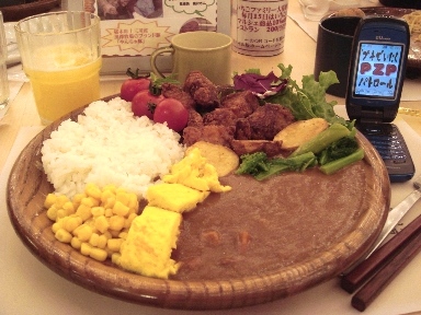 大皿にカレーを盛りつけてみました(笑)でも深さが無いんであまり乗りませんね(涙)あとデザートを食べて終了です。