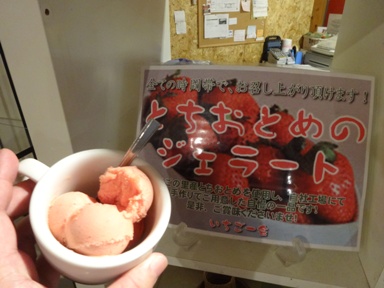 とちおとめジェラードも美味しかった。店の外にはヒツジやヤギがいて、ちょっとした観光地気分を味わう事ができる。