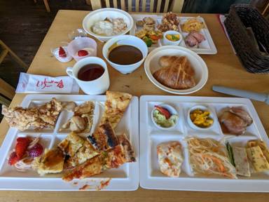 何度も来ていると内容が解っているので皿にまとめやすいです。そんな訳でメインメニューを一通り盛ってみました。